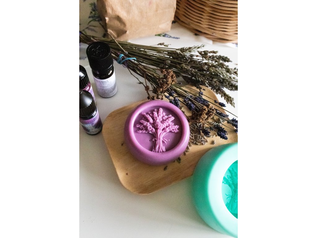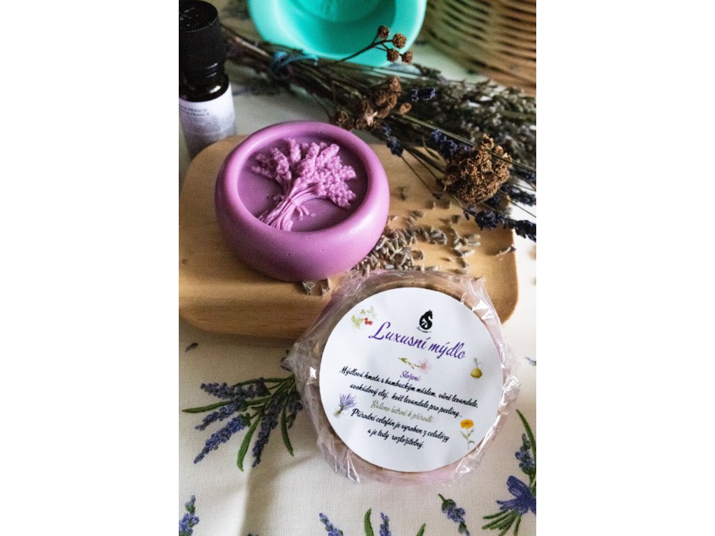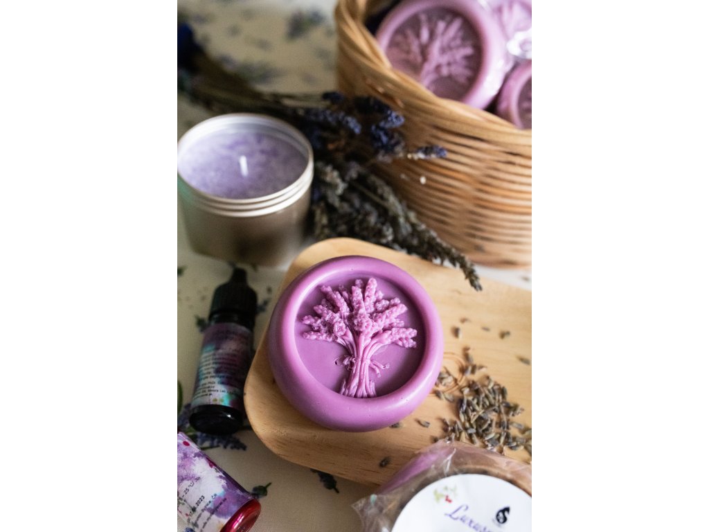 Ručně vyráběné mýdlo s bambuckým máslem, ve fialové barvě, s květy levandule, levandulovou vůní a a avokádovým olejem. Mýdla jsou díky bylinným složkám skvělá pro peeling pokožky.